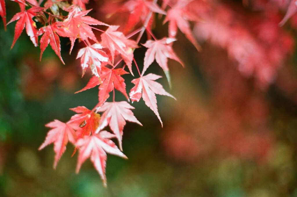 紅葉が始まる時期、公園や森を歩き、落ち葉の音や冷たい空気を五感で感じる。