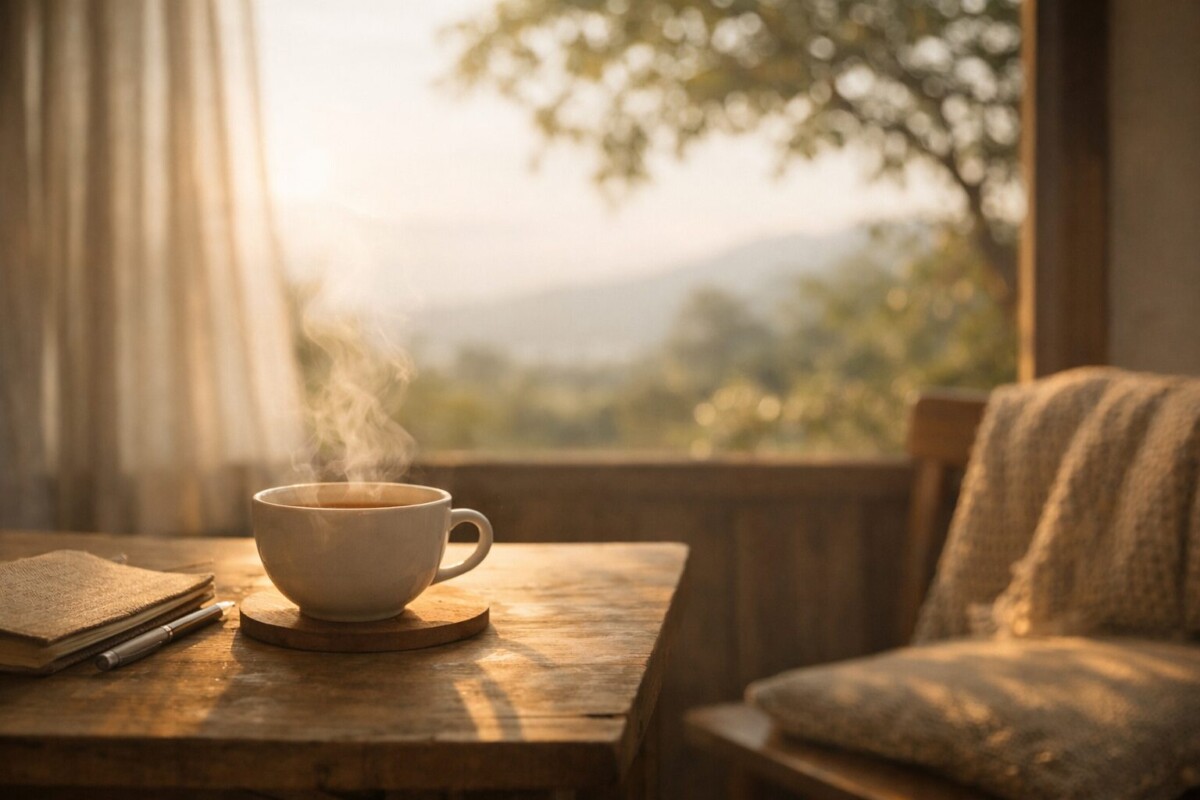 あるいは、沸いたばかりのお湯の音に耳を澄まし、立ち上がる湯気を眺めるような。