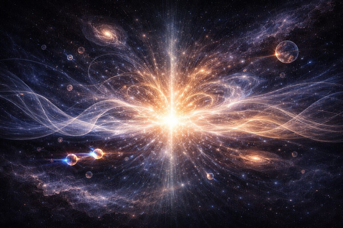 私たちの身体を構成する原子も、星々の光も、そのすべては「量子場のゆらぎ」が物質へと凝縮した結果であると説かれます。